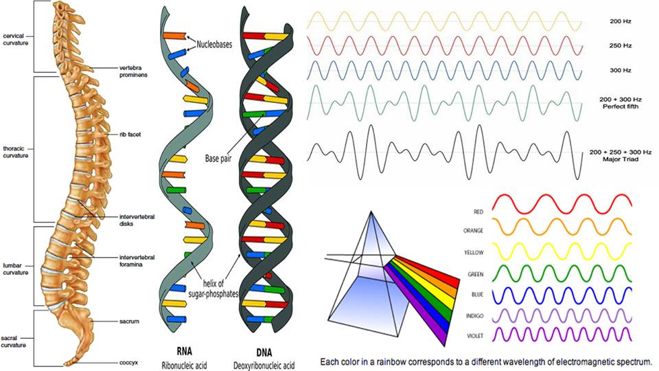 For example, your vertebra, which protects the spinal cord and neural connections in the body, is shaped in curvatures known as kyphosis and lordosis. And if you look at DNA, the original cellular structure that gives rise to everything in your body, this too resembles the same shape as your vertebra.
